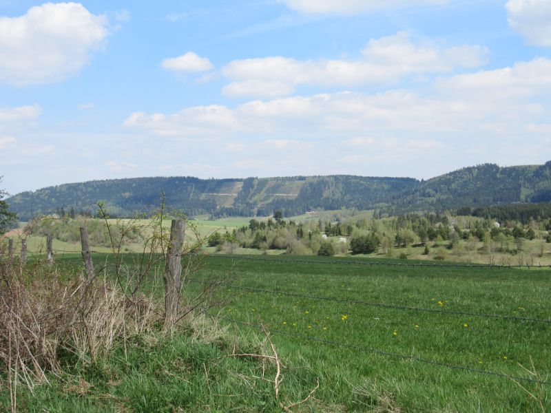 Drugi dzień to atrakcje Chełmska i Krzeszowa, aczkolwiek planuję przejść choć kawałek szlakiem granicznym. Prowadzi on w większości przez las, gdzie gęstość zaptaszenia terenu spada, ale polany i łąki wynagradzają mój głód. Łąka pachniała taką świeżością, że chciałem się położyć obok krów i nie wracać